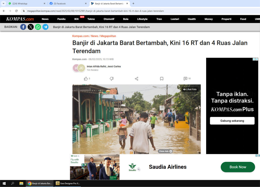Kemarin malam, Sabtu 8 Februari 2025, langit di kampungku, Ciloang, Kota Serang-Banten, gelap. Air tumpah dengan deras semalaman. Sesekali langit jadi terang karena pecut kilat menggelegar. Halaman rumah saya yang 1000 meter saja tergenang hingga sebetis lalu bagaimana nasib kampung-kampung yang lebih rendah dari permukaan tanah? Pastri kebanjiran.