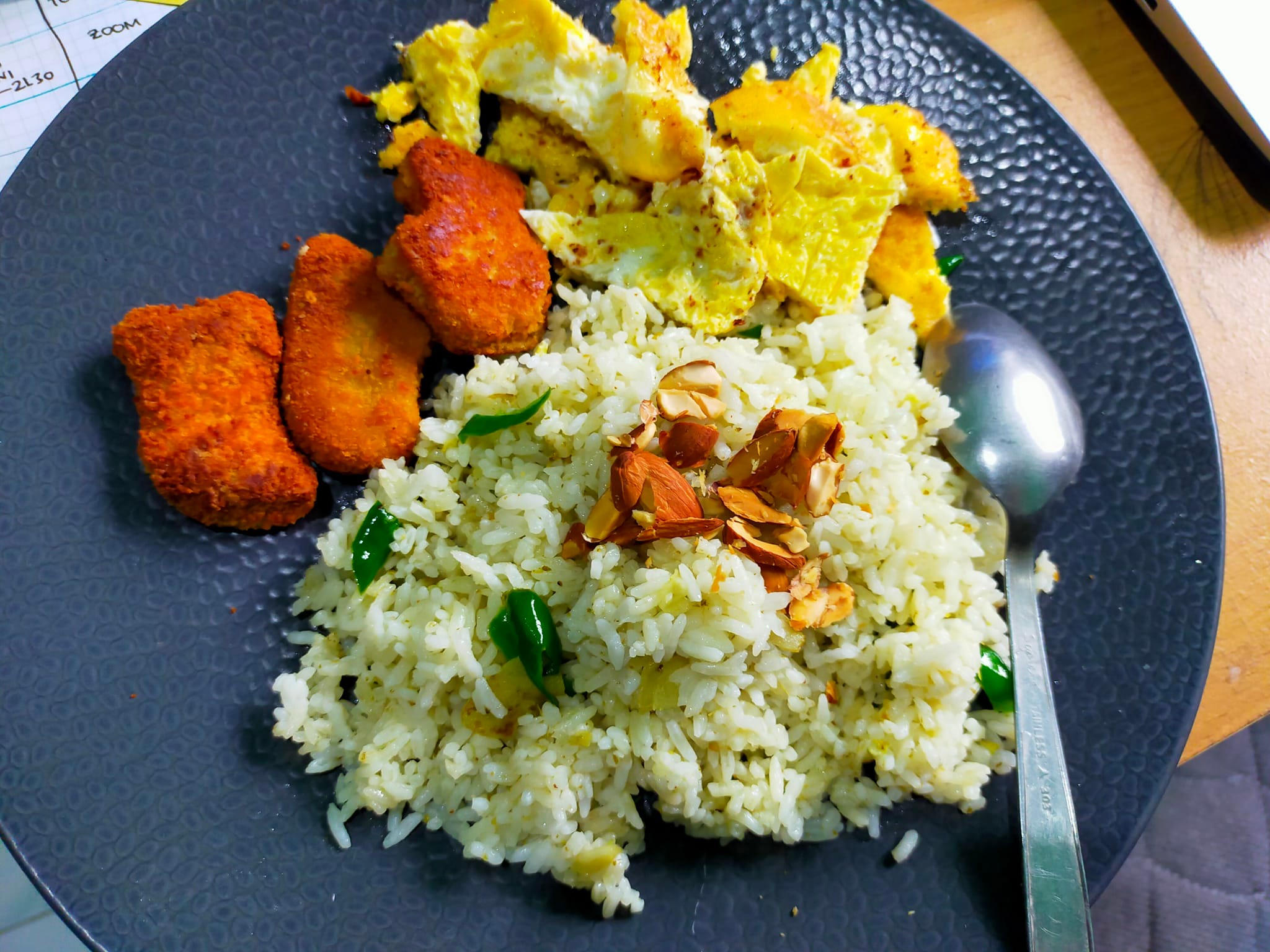 Ada nasi goreng sambal hija, nasinya berwarna hijau. Kalau warnanya kuning, eh, buka merujuk ke partai, lho. Tapi itu karena kunyit. Pernah juga warna merah, sambalnya ampuuuuun.