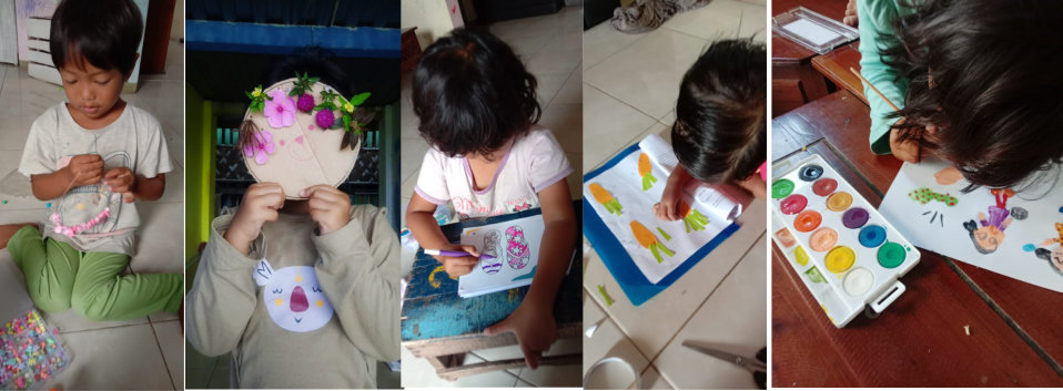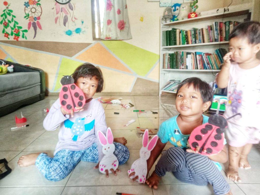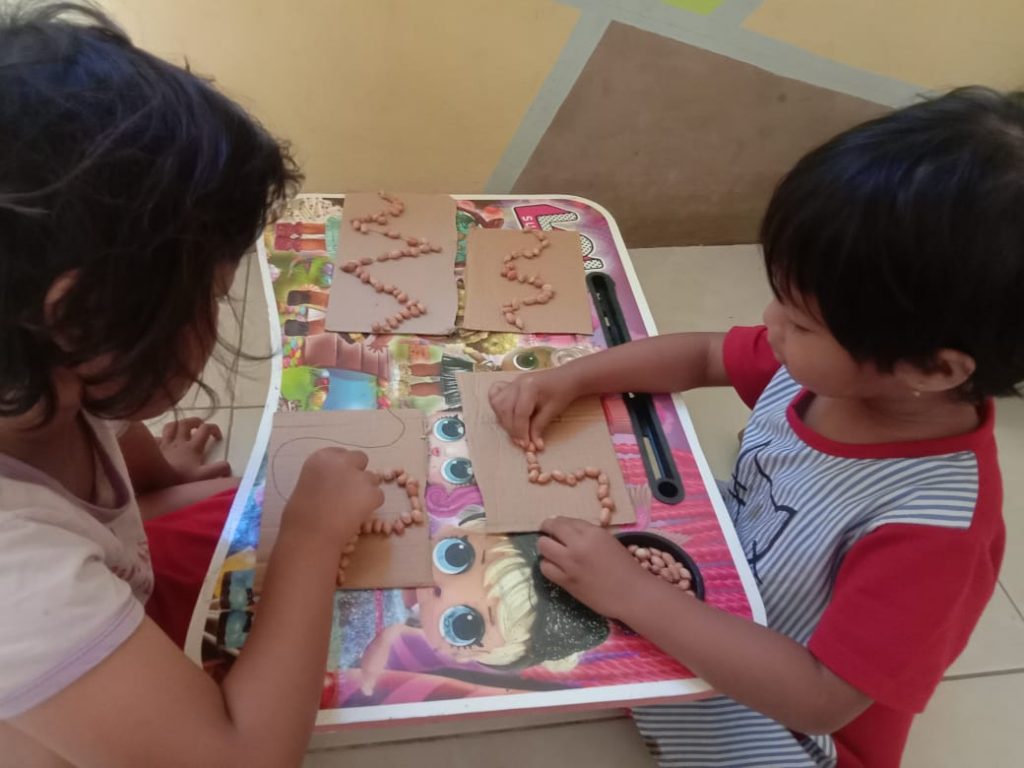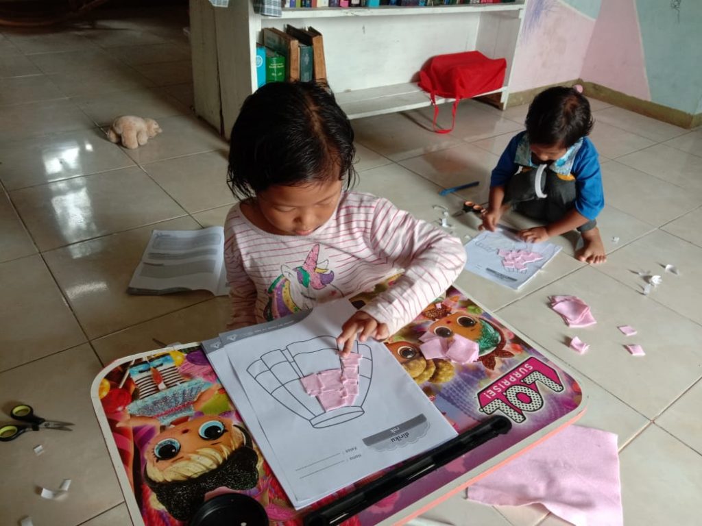 Kegiatannya biasanya dimulai dengan membaca buku dengan nyaring (read aloud) lalu ada tanya-jawab seputar buku, kemudian penguatan dengan menggambar objek yang ada di buku. Setelah itu barulah masuk ke materi seperti berhitung dengan menggunakan media belajar seperti pompom, playdough dan lain sebagainya. *