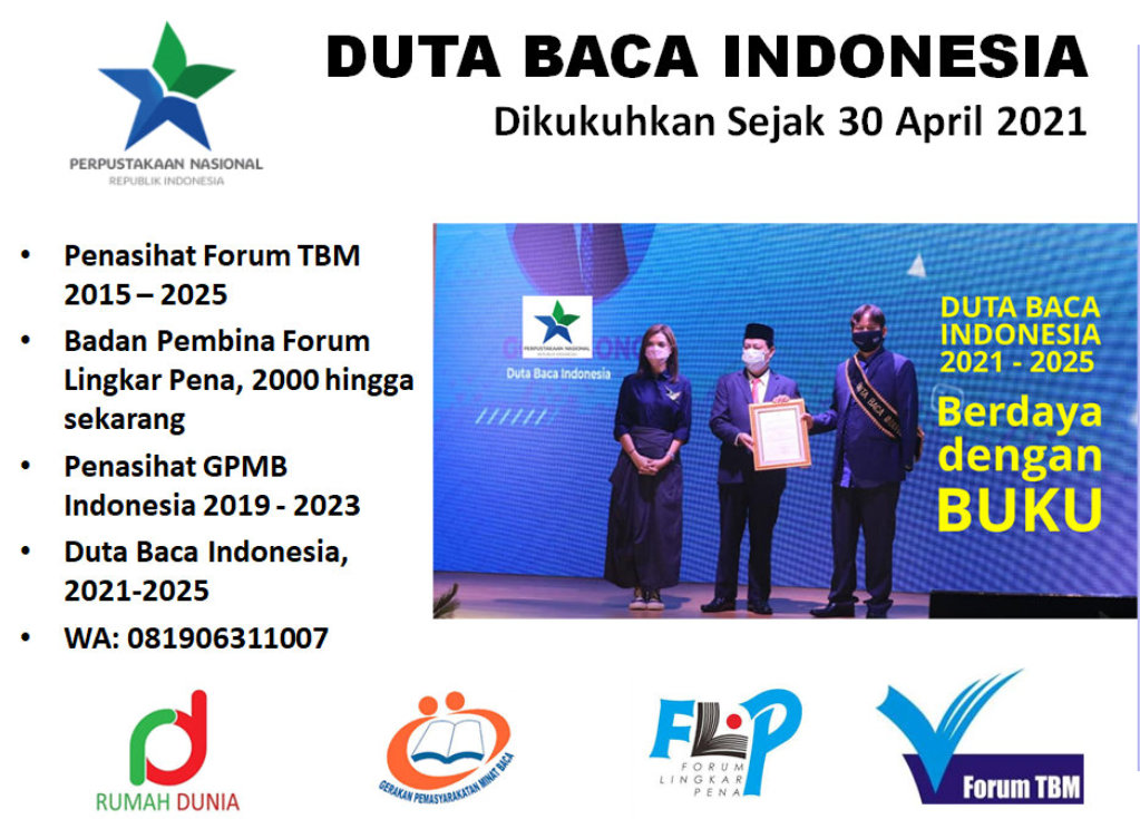 Betul kata Bapak dan Emak yang Menyuruhku Membaca agar Aku Tidak jadi Beban Masyarakat di Masa Depan. Itu terbukti. Aku jadi berdaya dengan buku. Bahlan Perpusnas RI menetapkan aku sebagai Duta Baca Indonesia periode 2021-2025 meneruskan perjuangan Tantowi Yahya, Andi Noya, dan Najwa Shihab.