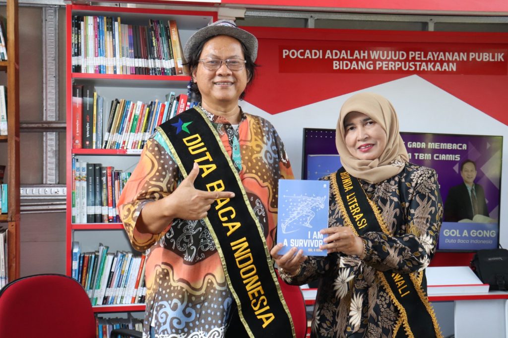 Saya sebagai Duta Baca Indonesia di tulisan ini berfoto bersama Bunda Literasi dan Camat di Kecamatan Kawali Ciamis, yang menghadiri bedah buku I am Survivor (Epigraf, 2023) karya saya di taman bacaan Gada Membaca, Senin 21 Agustus 2021. Sekitar 60 peserta menghadiri peristiwa bersejarah ini.