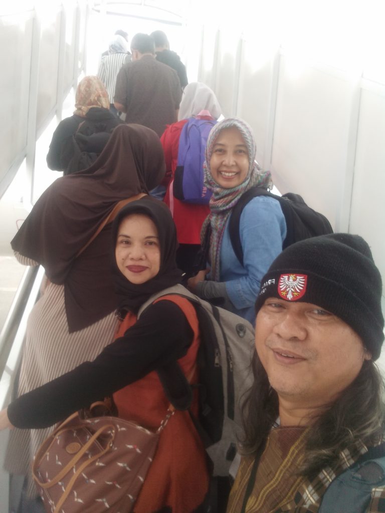 Tanpa sadar lelaki itu mengamini pesan tersebut. Menyaksikan pasangan keluarga sesama rombongan yang membawa serta anak-anaknya yang masih kecil-kecil, membuat lelaki itu bertekad dalam hatinya, kelak ia harus mampu membawa istri dan puterinya ke luar negeri. Syukur-syukur bisa menyediakan panggung untuk oranglain sebagaimana orang dermawan yang memberangkatkannya.