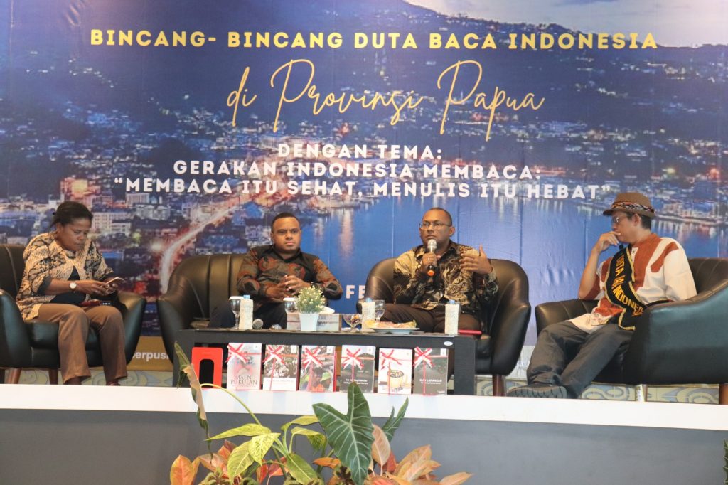 Kunjungan terbaru saya ke Papua pada Kamis, 29 Februari 2024 lalu. Saya jadi moderator dalam “Bincang Duta Baca Indonesia bertajuk ‘Gerakan Indonesia Membaca: Membaca itu Sehat Menulis itu Hebat” yang diselenggarakan Perpusnas RI di aula Gubernur, Papua. Saya menyoroti Gerakan Literasi Papua kepada 3 nara sumber; yaitu Michael J Yarisetouw (Duta Baca Papua), Solis Hanny Felle (Pengelola Rumah Baca Yoboi), dan Jose Alvan Ohei (penulis dan content creator Papua).