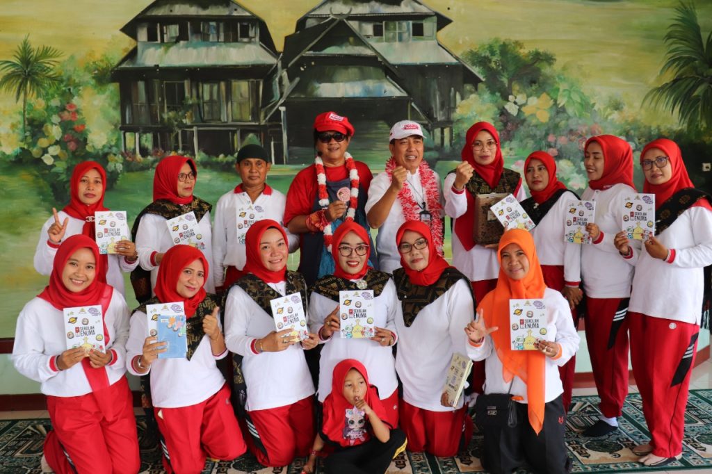 Setelah acara mendongeng Paman Gong selesai, ia membagi-bagikan souvenir dari Sekolah Enuma Bahasa Indonesia berupa notes, bolpoin, hand sanitizer, mug, dan tumbler untuk guru-guru TK Negeri 1 Sumbawa.