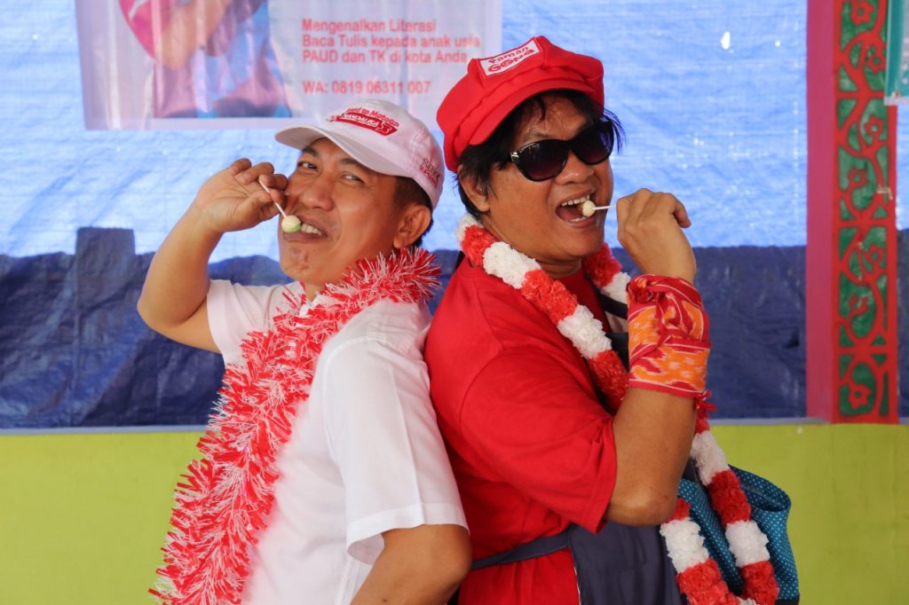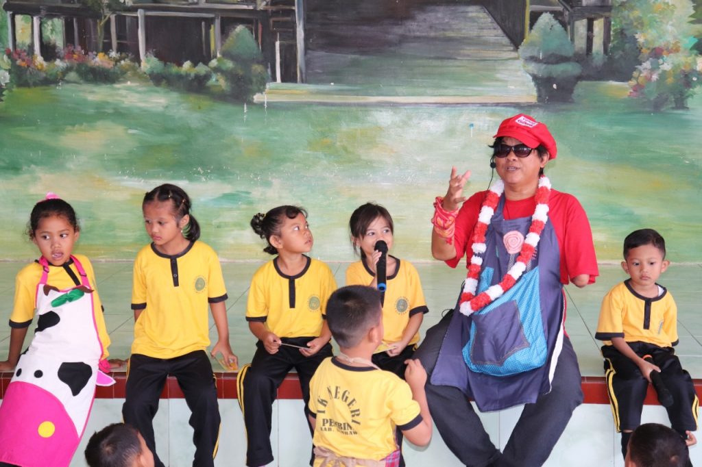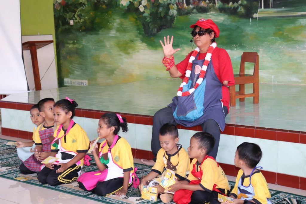 “Saya berusaha menyisipkan buku, literasi dan asyiknya membaca dengan membuat anak-anak bergembira. Selain itu dengan mendongeng saya juga menyisipkan nilai-nilai budi pekerti,” jelas Paman Gong.