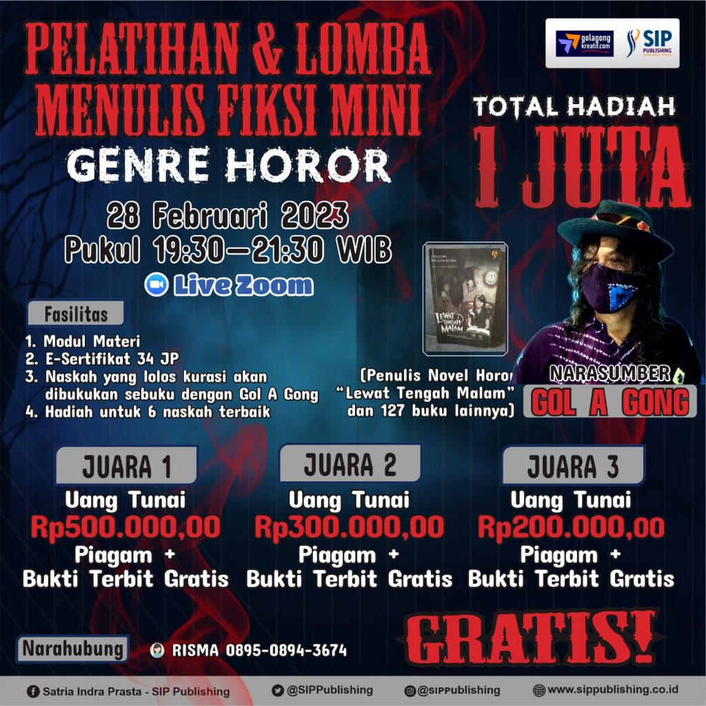 Di April, ada 4 buku antologi fiki mini jenis horor yang akan terbit. Kelasnya berlagnsung pada 28 Februari. Pesertanya tidak sebanyak certali, selitar 400-an peserta. Kata Indra Defandra, “Kelas Horor memang tidak seramai kelas certalik. Pada takut!”
