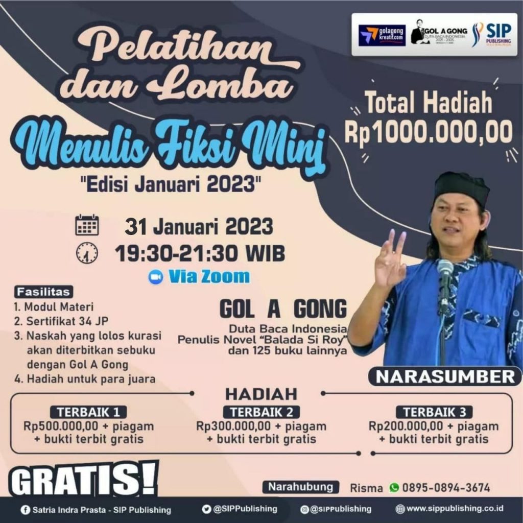 Sekarang Maret 2023, saya sedang menyiapkan 11 fiksi mini, hasil pelatihan pada 31 Januari 2023. Tunggu, ya. Insa Allah, selama Maret 2023, di sela waktu luang Safari Literasi Duta Baca Indonesia – Perpusnas RI, saya menulis fiksi mini.
