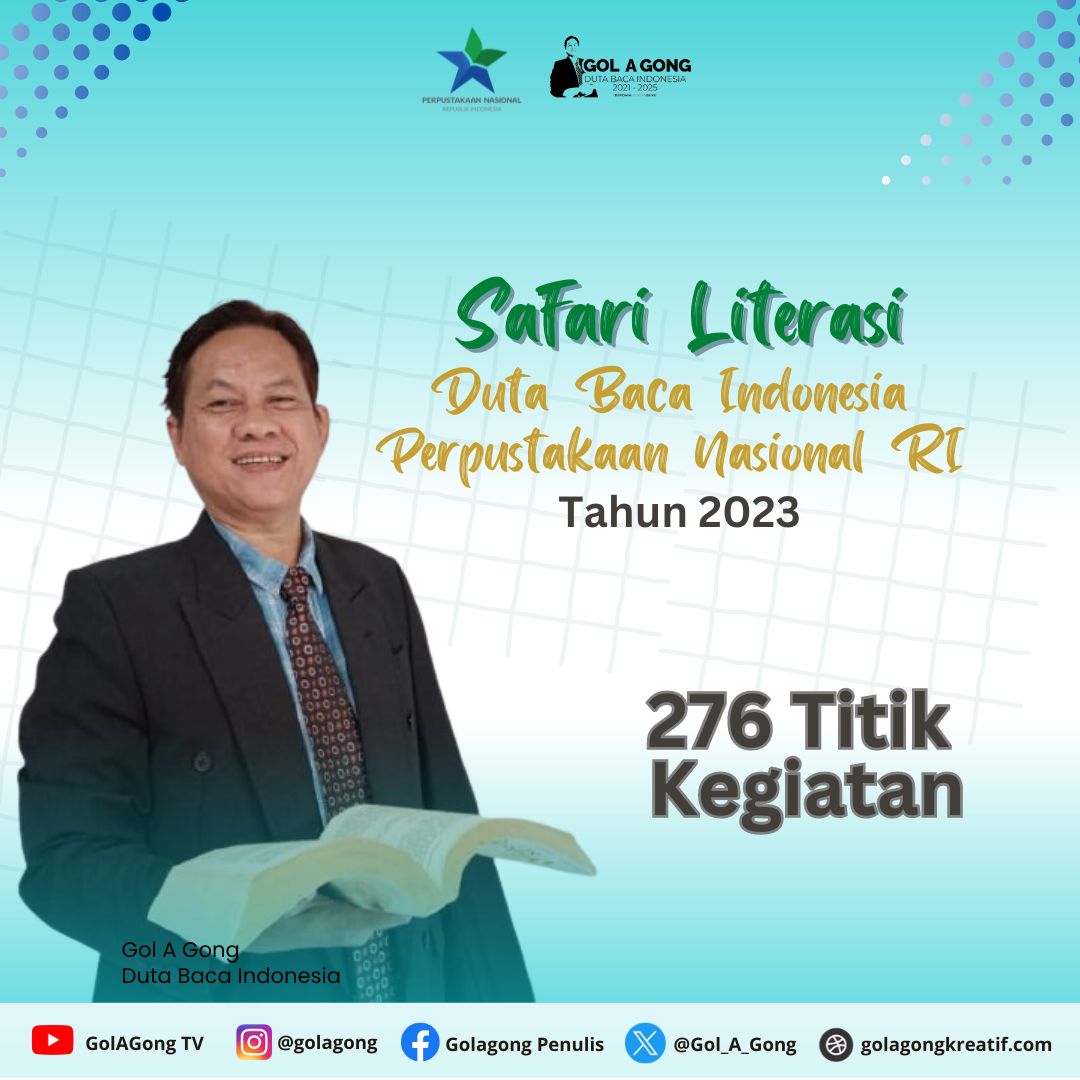 Kegiatan DBI tahun 2023 telah lewat juga. Dari 12 kegiatan jadi 276 kegiatan. Mobil operasional dari Perpusnas RI sangat membantu. Saya dan tim bisa blusukan ke mana-mana. Strategi kampanye membaca-menulis yang biasanya seputar pelatihan, seminar, talkshow, pesta puisi, kini dengan Celemek Ajaib Paman Gong merambah ke TK/PAUD. Terima kasih kepada semuanya!