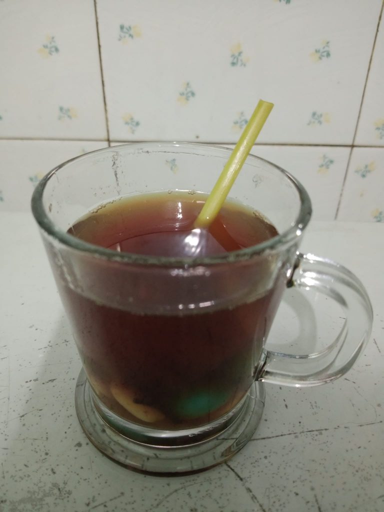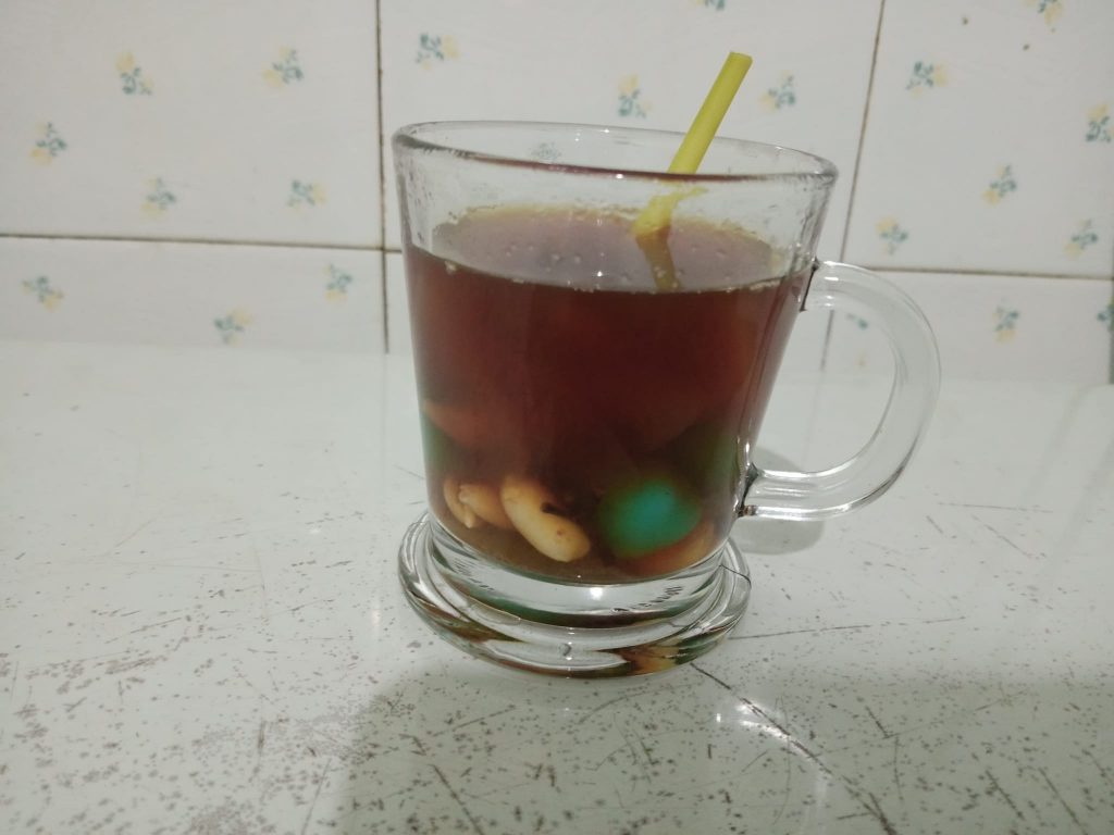 Ini rasanya less sugar pisan. Manisnya cuma di kuah, terbuat dari sekeping kecil gula aren jahe. Kolang-kalingnya dari hidangan buka puasa tadi, itu pun nggak begitu manis. Bagiku yang penting kami tidak kebanyakan asupan gula.
