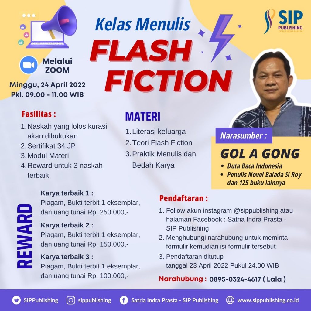 “SIP Publishing siap menerbitkan,” Indra Defandra selaku CEO SIP Publishing bersemangat. “Lima puluh cepen pilihan karya Gol A Gong!” tambah Indra.