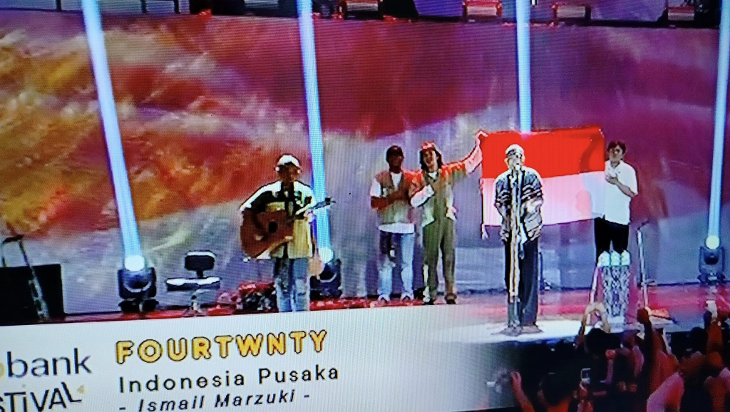 Namun, yang paling bikin saya takzim dan haru adalah saat mereka mengajak seluruh penonton berdiri dan menyanyikan lagu Indonesia Pusaka. Bahkan sekelas Pak Chairul Tanjung saja, rela turut berdiri dan bernyanyi khidmat. Fourtwenty, emang keren bingit, pakai s.