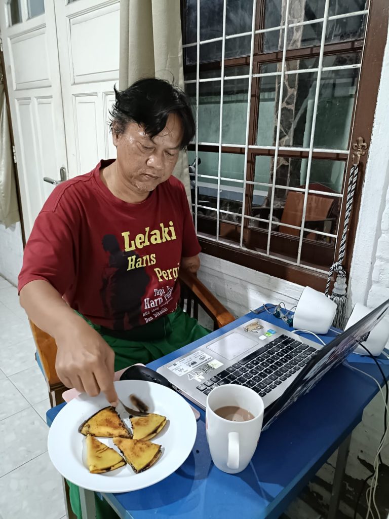 Aku sudah gosok gigi, tapi penasaran rasanya. Mau ambil sepotong, sayang gigi udah bersih. Akhirnya makan potongan kecil yang mau dimakan hubby.