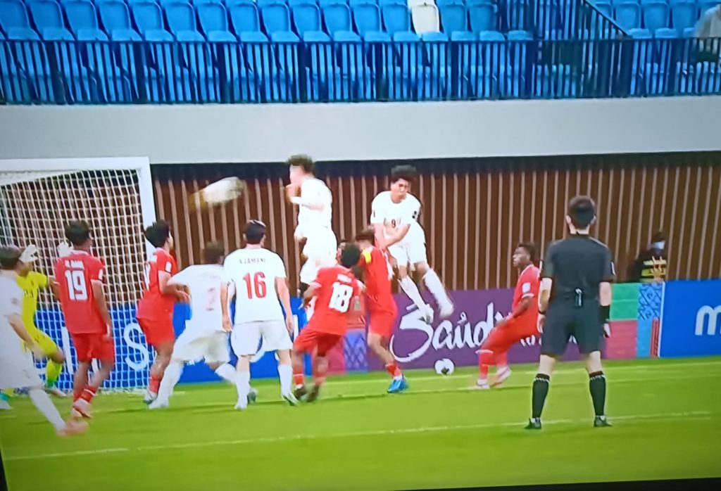 Menit ke-5, Iran Unggul berkat tandukan Hesam Nafari . Tapi hingga babak pertama usai, Iran tetap unggul. Ada bebepapa peluang mengancam gawang Iran. Misalnya tendangan gledek Toni Firmansyah berhasil ditepis kiper Arsha Shakouri.