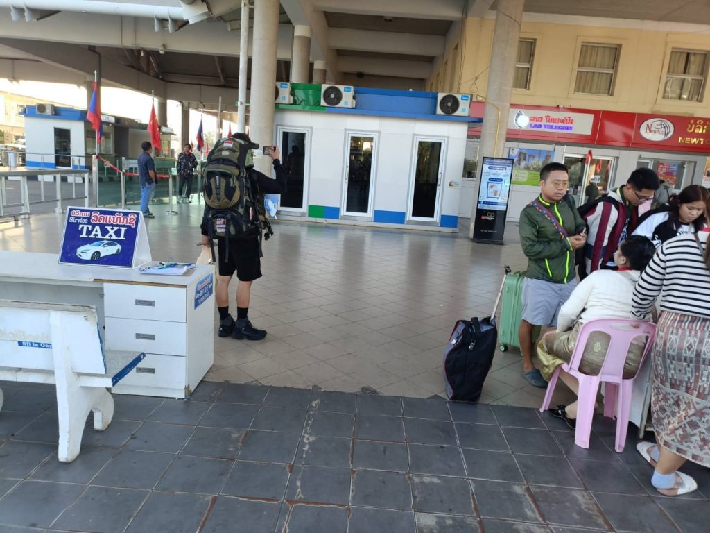 Di imigrasi Laos, kami mengisi kartu imigrasi. Sebetulnya sudah kami coba secara online. Tapi hang. Kemudian kami antre sebentar dan membayar 20 Baht/orang sebelum paspor dicap.