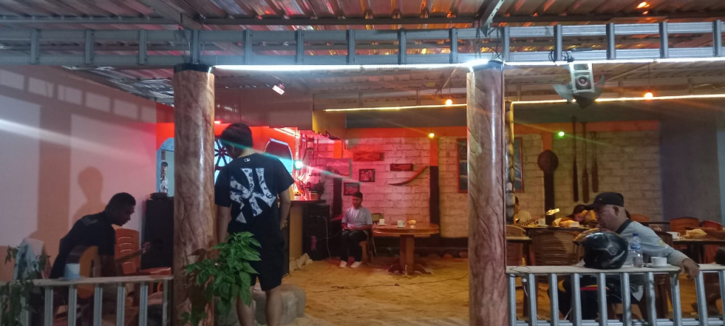 Suasana jadi begitu asyik dinikmati. Sesekali musik berhenti, kita masih bisa mendengarkan debur ombak saat hening. Sungguh tempat yang menginspirasi. Layak untuk dikunjungi saat kalian datang ke Larantuka di Flores Timur NTT. Menu makanan dan minumannya terjangkau untuk kita yang berkantong pas-pasan.