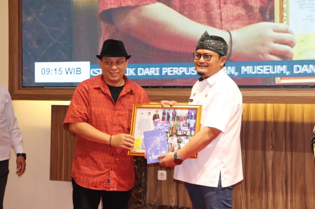Kepala Perpusnas RI, Muhammad Syarif Bando hadir menerima buku dan souvenir memoribilia Gol A Gong dari Penerbit Epigraf.