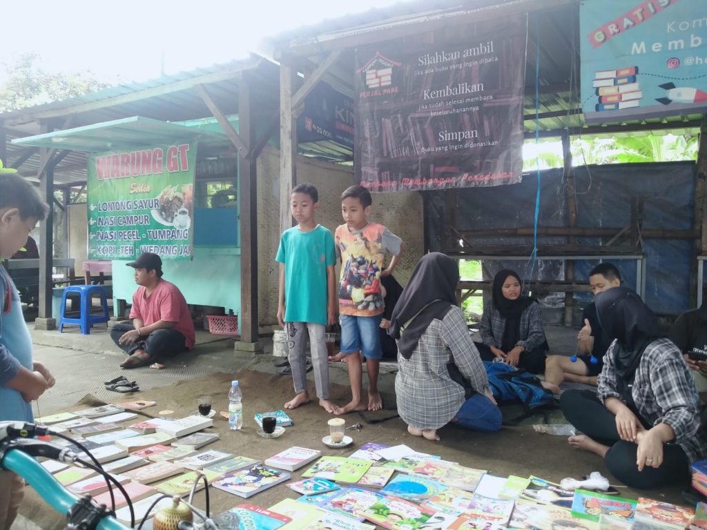 CAR FREE DAY di Pare kali ini tidak biasa. Jalanan tidak hanya dihiasi dengan bisingnya lato-lato dan teriakan pedagang yang sedang mencari nafkah. Saat saya melangkahkan kaki untuk pulang, mata saya tertuju pada ramainya orang yang sedang membaca. Saya berpikir itu sedang berjualan, namun ternyata itu adalah lapakan buku yang gratis untuk dibaca.