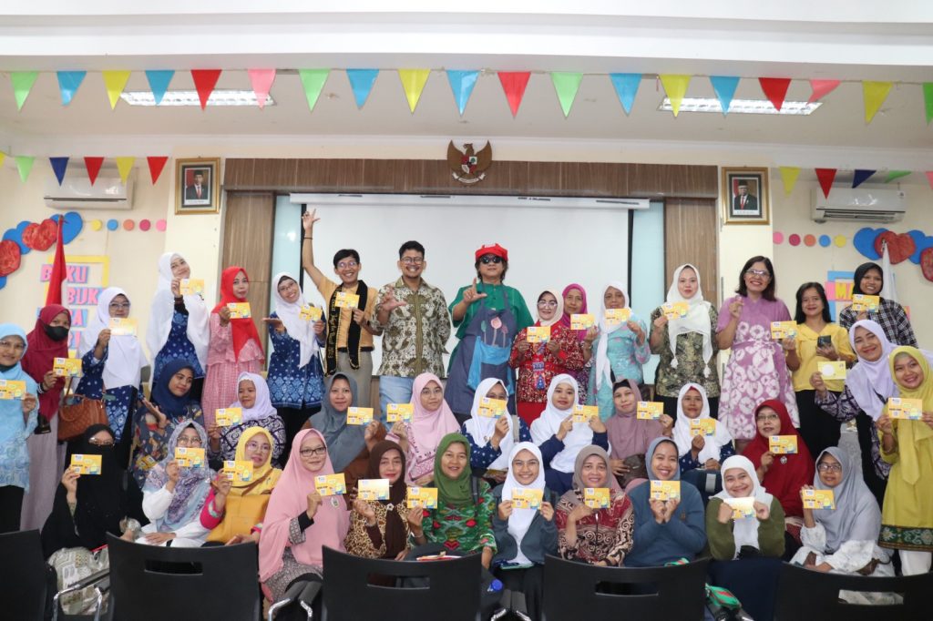 Sebanyak 50 guru PAUD/TK se-Jakarta Pusat antusias mendengar. Di sela-sela kegiatan Gol A Gong memberikan hadiah buku Connect The Dot karya Helmy Yahya dan booknote dari Sekolah Enuma Indonesia kepada para peserta yang aktif bertanya dan merespon. Kak Cahyo juga memberikan souvenir buku karyanya dan tumbler bergambar foto dirinya. (Rudi Rustiadi)