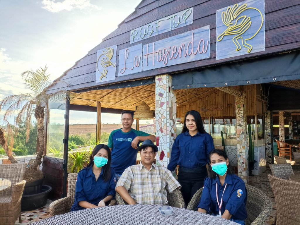Di depan pintu utama, staf dari Media Pendidikan Cakrawala NTT menyambut kamu. Lia, Ira, Matheus, dan satu lagi lupa namanya. Kami langung dibawa ke hotel La Hasienda bergaya Meksiko. Kamicheck in dan sarapan nasi goreng di roof top.