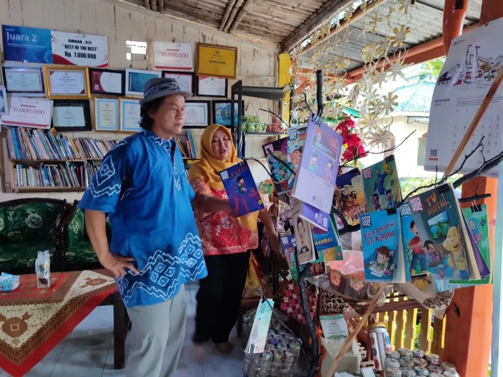 Saya, Rudi, dan Daniel sampai di rumah khas Jawa. Semacam rumah pendopo. Joglo. Sejak di halaman sudah terasa barang-barang bekas seperti botol ditumpuk. Juga ada motor limbah pustaka, yang keliling kampung menampung barang bekas.