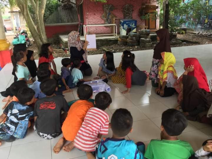 Jumat, 29 Desember 2023. aku pulang ke rumah agak sore. Semula masih mau diajak hangout sama anak lanang, tapi aku ingat anak-anak di Komunitas Rumah Dunia harus didampingi. Di perjalanan aku chatting relawan di grup, minta tolong menyiapkan alat tulis dan gambar.