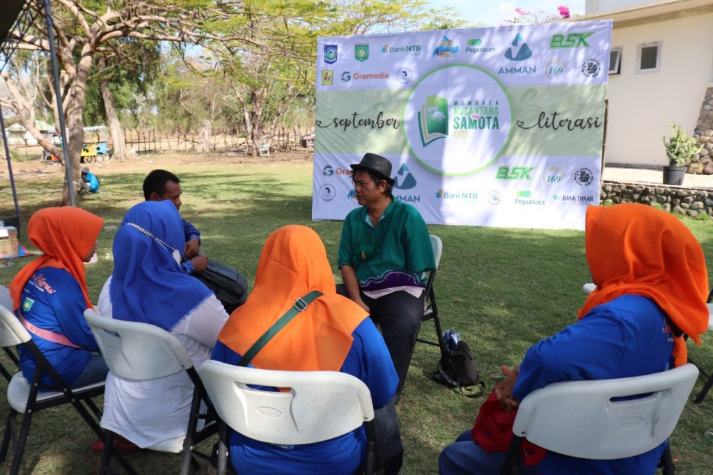 Menuggu 2 jam di lokas, peserta yang kembali hanya 7 orang. Jadilah ini pelatihan eksklusif. Gol A Gong mengajak mereka duduk melingkar di kursi dan sangat antusias memperhatikan teori-teori yang disampaikan Gol A Gong. Turut hadir dalam pelatihan tersebut Tri Budiprayitno, Kepala Dinas Perpustakaan dan Kearsipan Provinsi NTB.