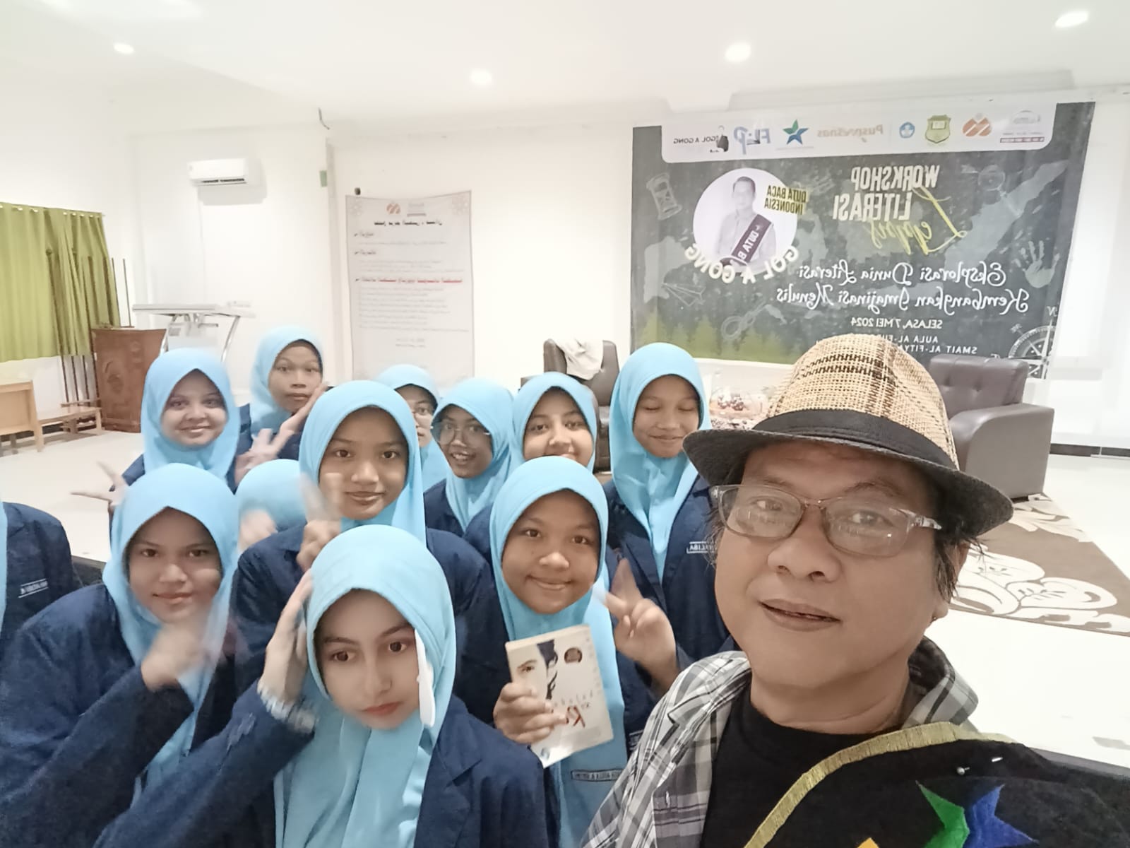 Ini titik ketiga di Medan. Setelah dengan FLP, Dinas Perpustakaan Sumatra Utara, kini dengan SMA IT Al Fityan Medan. Anak-anak Gen Alpha semagat belajar menulis fiksi mini. Langsung praktik dan banjir hadiah buku.