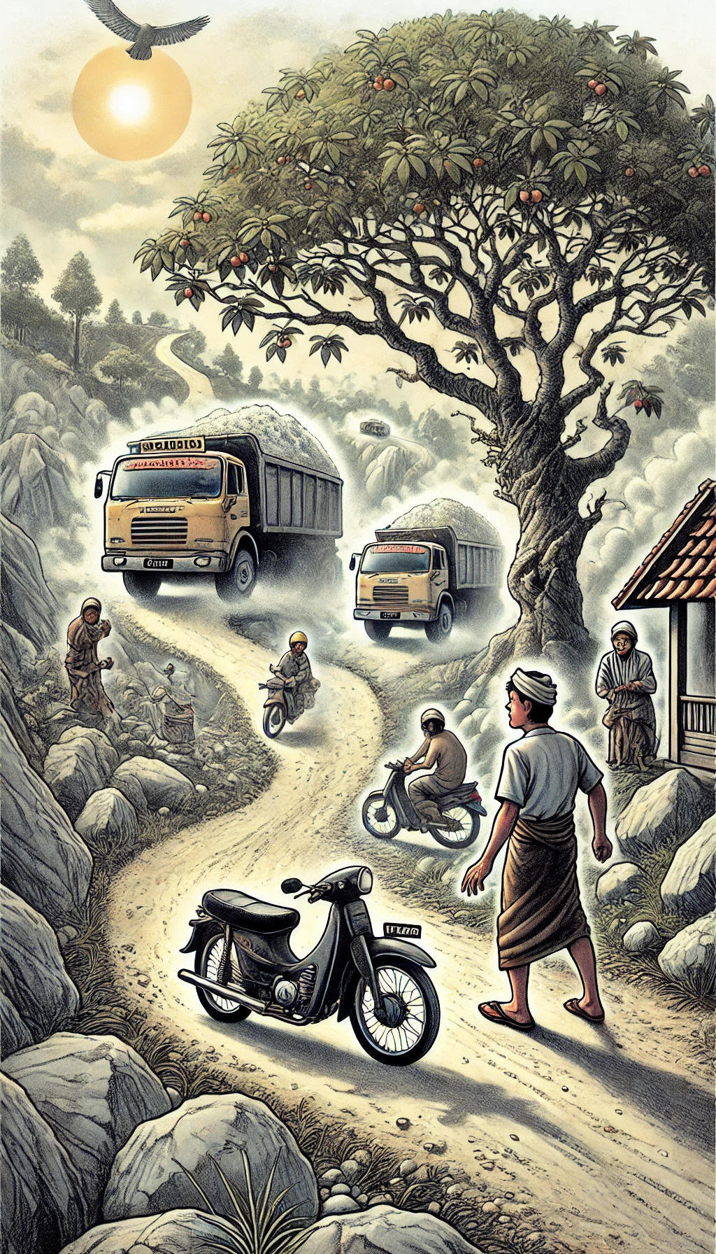 Keduanya terus melangkahkan kaki. Sebelum memasuki pintu masuk Hutan Larangan, keduanya berjalan menurun di jalan setapak. Tetua berjalan dengan kecepatan seperti berjalan di jalan yang datar karena sudah terbiasa. Lain halnya dengan Erwin yang amat hati-hati berjalan, menjadi lambat, tidak mau tergelincir, dan ini berkibat Erwin sering tertinggal.