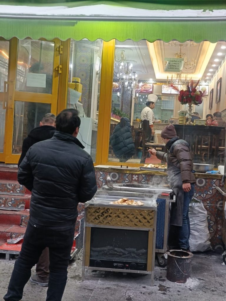 Aku keluar hotel. Jalanan Urumqy basah. Salju turun pelan-pelan. Aku susuri kota yang masih gelap. Padahal sudah pukul 09:00. Aku ingin melihat kehidupan pagi di sini. Terasa berjalan lambat.