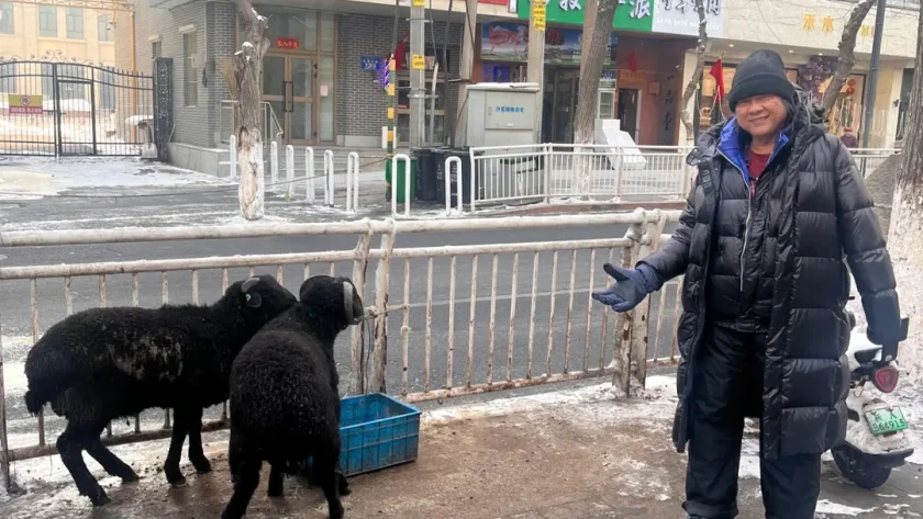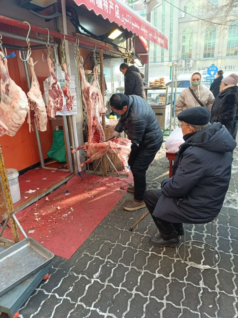 Di kedai-kedai, dagingnya sudah dipajang. Kita tahu, daging domba bisa menghangatkan badan di suhu minus.