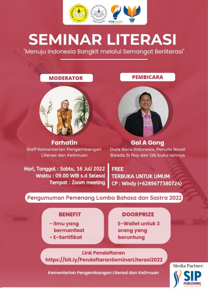 Berdasarkan hal tersebut, maka kami mengadakan suatu kegiatan bernama Seminar Literasi 2022 menyadari bahwa Indonesia memiliki potensi yang besar, dari penduduknya yang banyak, dengan bonus demografis yang digadang-gadang pada tahun 2040 diharapkan generasi muda yang diasah sekarang ini dapat menjadi generasi gemilang pada tahun 2040 karena Indonesia adalah bangsa yang besar dan suatu saat akan menjadi bangsa yang maju. Maka BEM Unsoed 2022 melihat bagaimana gerakan literasi ini menjadi kendaraan untuk mencapai negara maju, maka dari itu dengan mengusung tema “Menuju Indonesia Bangkit Melalui Semangat Berliterasi” diharapkan seminar literasi ini dapat menjadi wadah tentunya dalam mengasah potensi generasi muda indonesia Menuju Indonesia Bangkit.