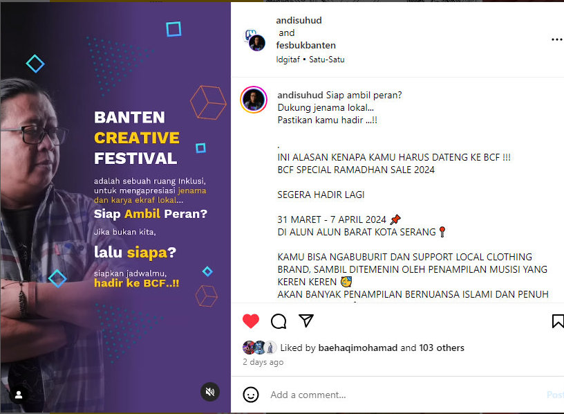 Pelaku kreatif seperti Fekraf (Forum Ekonomi Kreatif) yang digawangi Andi Suhud harus jadi teman Wahyu. Pejabat seperti Wahyu yang peduli pada industri kreatif, belum pernah ada. Dari provinsi juga, arahnya ke promosi terus, seremonial terus, tanpa mempercantik infrastrukturnya.