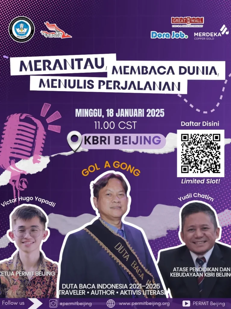 Alhamdulillah, ketika salju sedang turun di jalan kota Beijing, kegiatan pelatihan travel writing bersama Perhimpunan Mahasiswa Indonesia Tiongkok (Permit) di KBRI, Beijing, Minggu 18 Januari 2026 berjalan lancar.