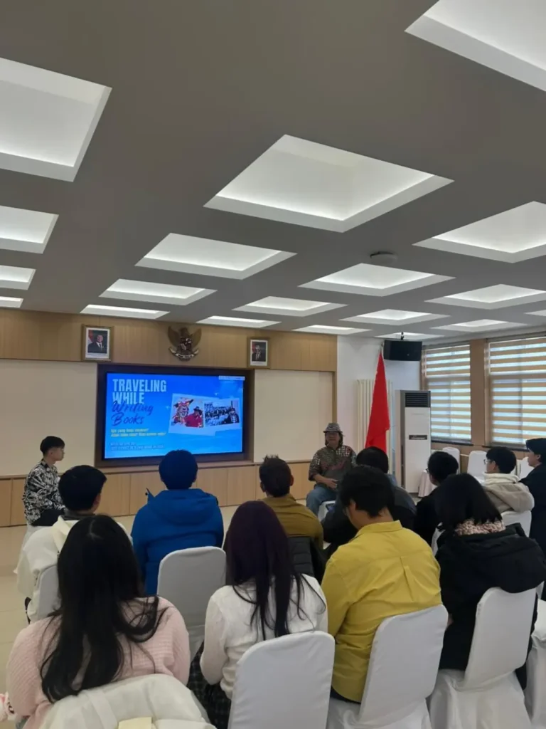 Yudil Chatim, Atase Pendidikan dan Kebudayaan KBRI Beijing membuka acara secara daring karena sedang bertugas di luar Beijing. “Ayo, pengalaman kalian selama kuliah di Beijing itu dituliskan,” begitu poin penting dari Yudil dalam sambutannya.