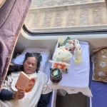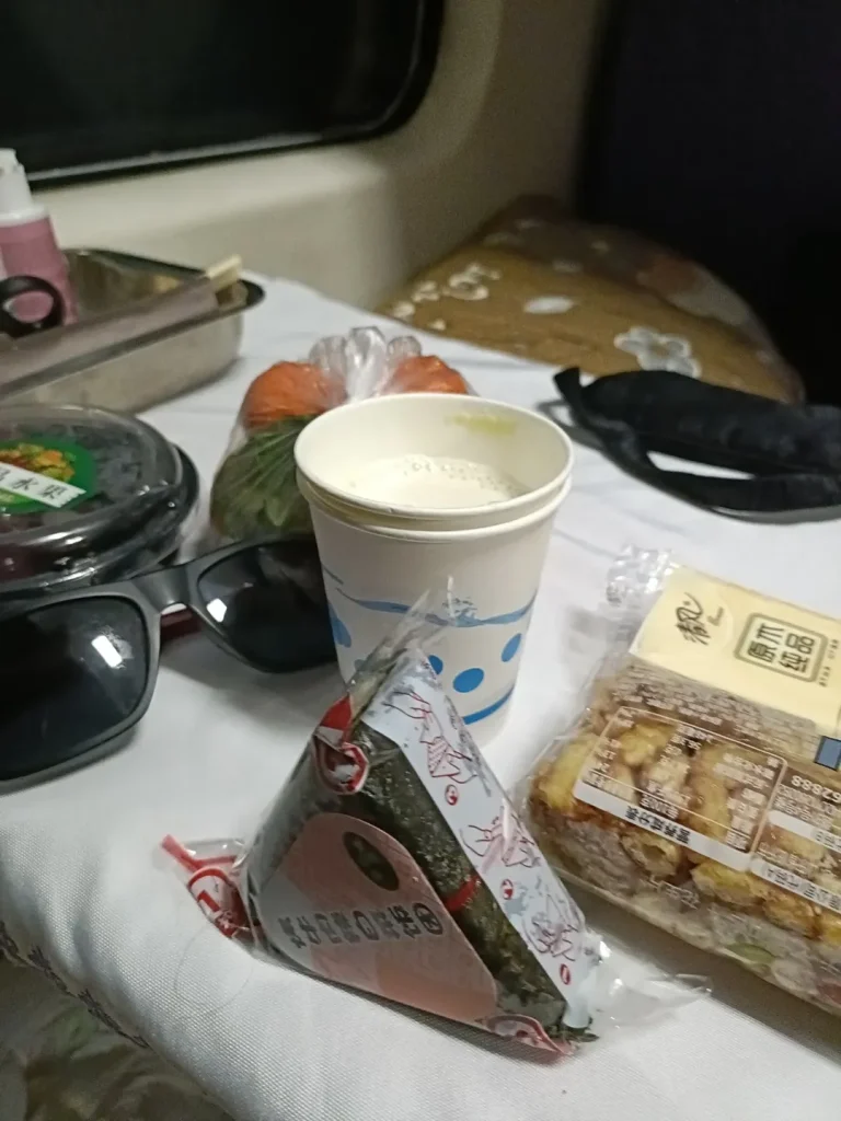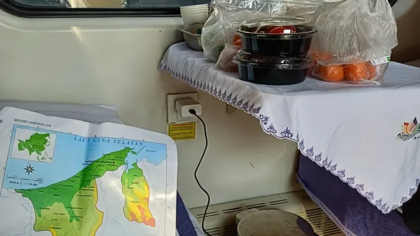 Nah, selama 2,5 hari di kereta, Teteh membekali kami 2 “kontainer” makanan dan minuman. Makan siangnya masih ada 1 paket nasi dan ayam – dimajan Jordy-Natasha. Tahu kan porsi makan meret? Satu porsi itu untuk berdua jika di kita.