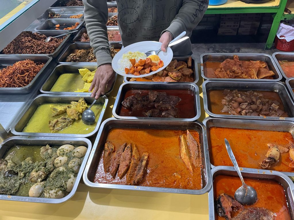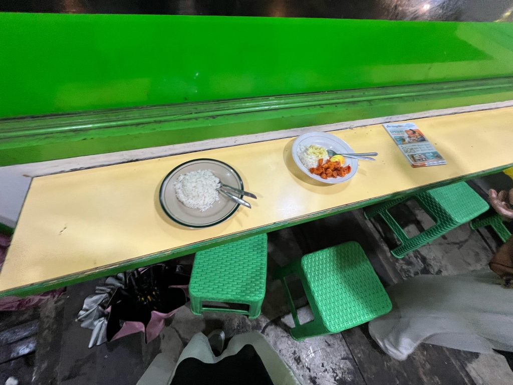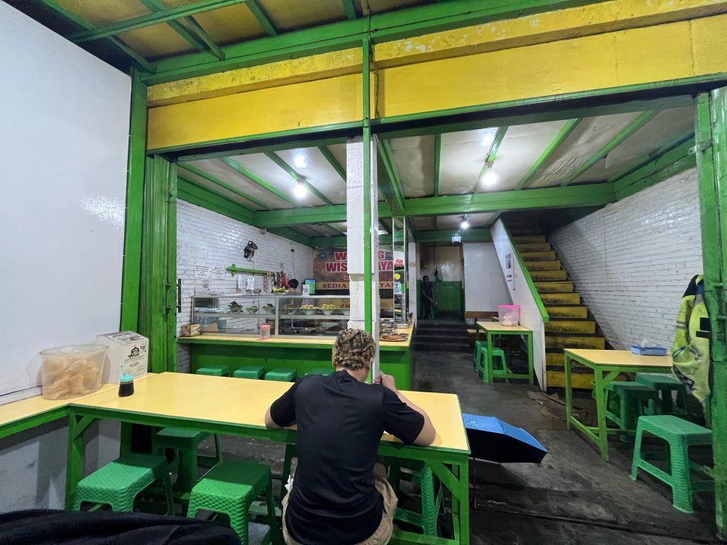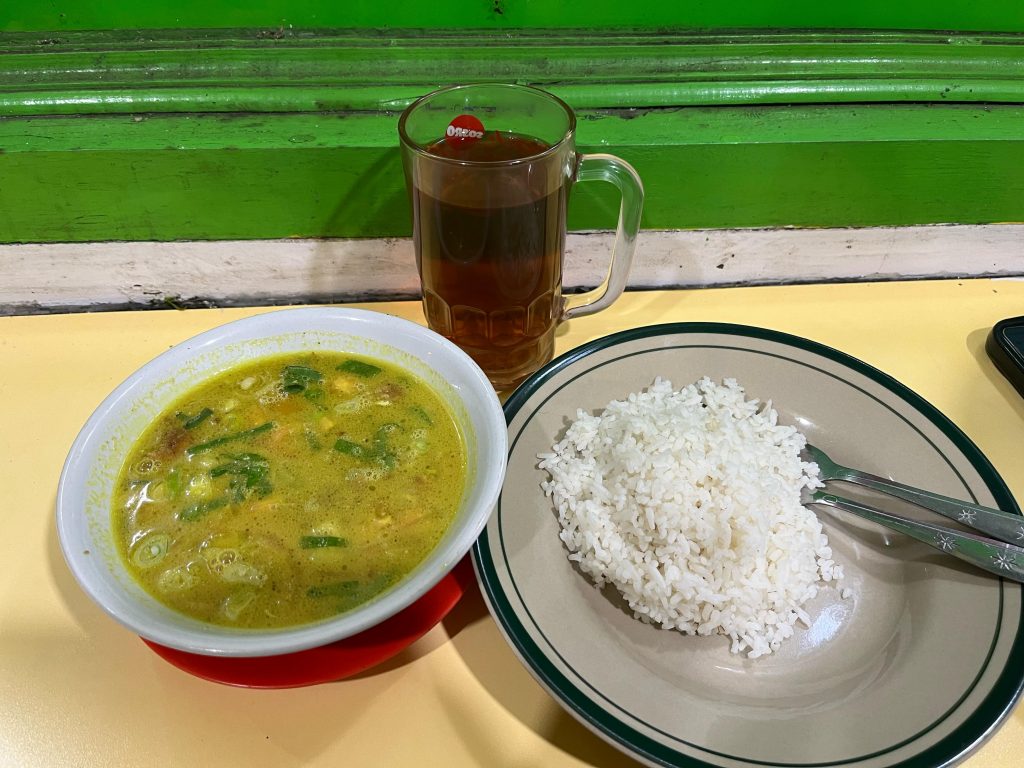 Karena hujan makin deras dan udara makin dingin, kita mutusin buat cari makan yang anget-anget. Akhirnya mampir di warteg kecil yang nyempil di pinggir jalan. Wartegnya kayak warteg biasa, tapi ternyata di situ jual soto juga.