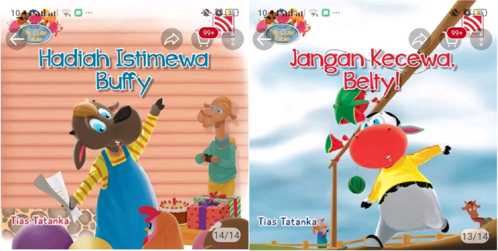 Silakan yang kemarin menanyakan link pembelian buku-buku bacaan anak karya saya. Ada lima judul seri My Cute Fable, cuma 35.000 satunya.