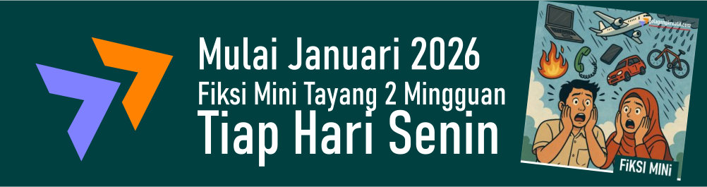 FIKSI MINI Mulai Januari 2026, Fiksi Mini tayang 2 mingguan tiap hari Senin. Kita tahu, fiksi mini sedang trend. Silakan mengirimkan fiksi mini karyamu. Satu lokasi, satu waktu, ada plot twist saat endingnya. Antara 250-500 kata. Silakan kirim fiksi minimu ke gongtravelling@gmail.com, subjek: fiksimini. Sertakan bionarasimu 5 kalimat, foto dirimu, dan ilustrasi yang mendukung. Ada uang ganti pulsa alakadarnya Rp. 100.000,- dari SIP Publishing. Selamat menulis. Jika ingin melihat fiksi mini yang sudah tayang, klik banner di bawah ini: