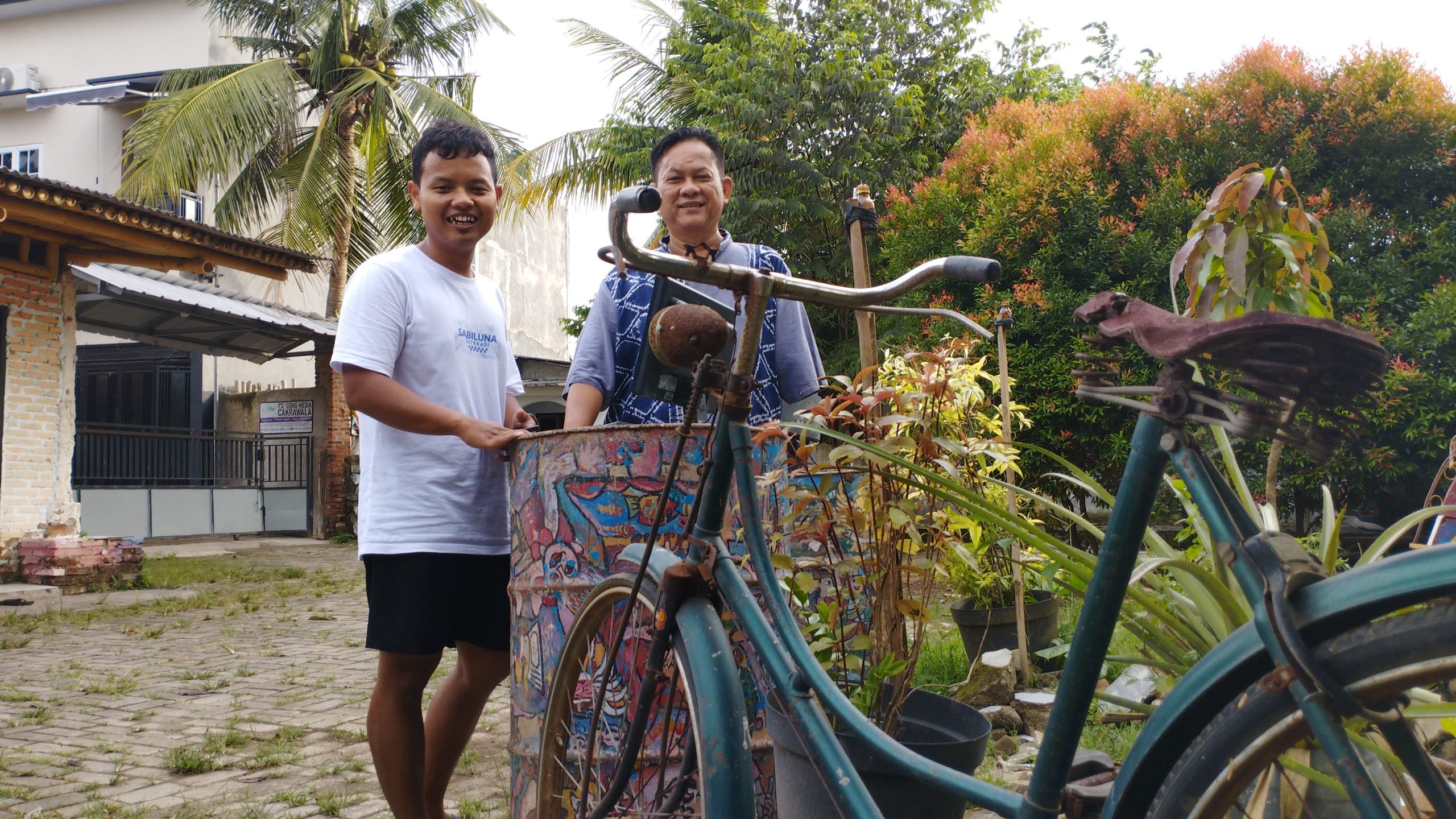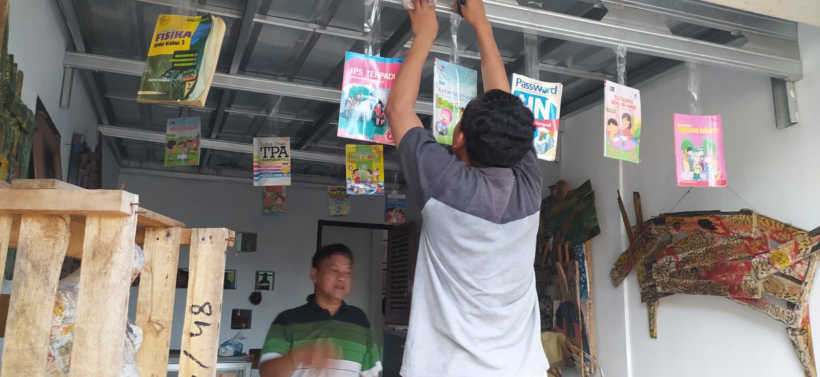 Aku hanya bisa memilih barang-barang bekas yang ada di rumah dan di gudang agar estetik. Ini untuk identitas Museum Literasi Gol A Gong, yang memberi contoh tidak perlu mengeluarkan dana besar. Kita bisa membuat museum pribadi di rumah untuk masa depan, untuk anak-cucu kita.