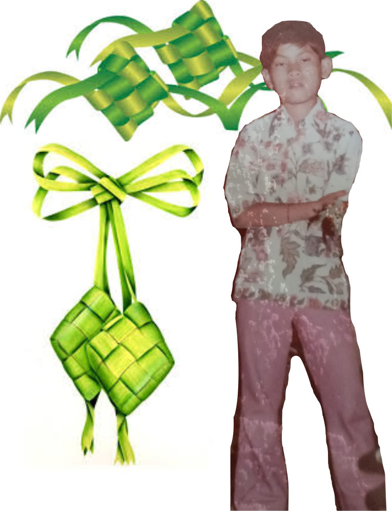 Lebaran identik dengan baju baru, amplop, ketupat, opor ayam, dan kue kering. Foto ini saat lebaran 1976, saya memakai baju baru, bergaya ala foto model.
