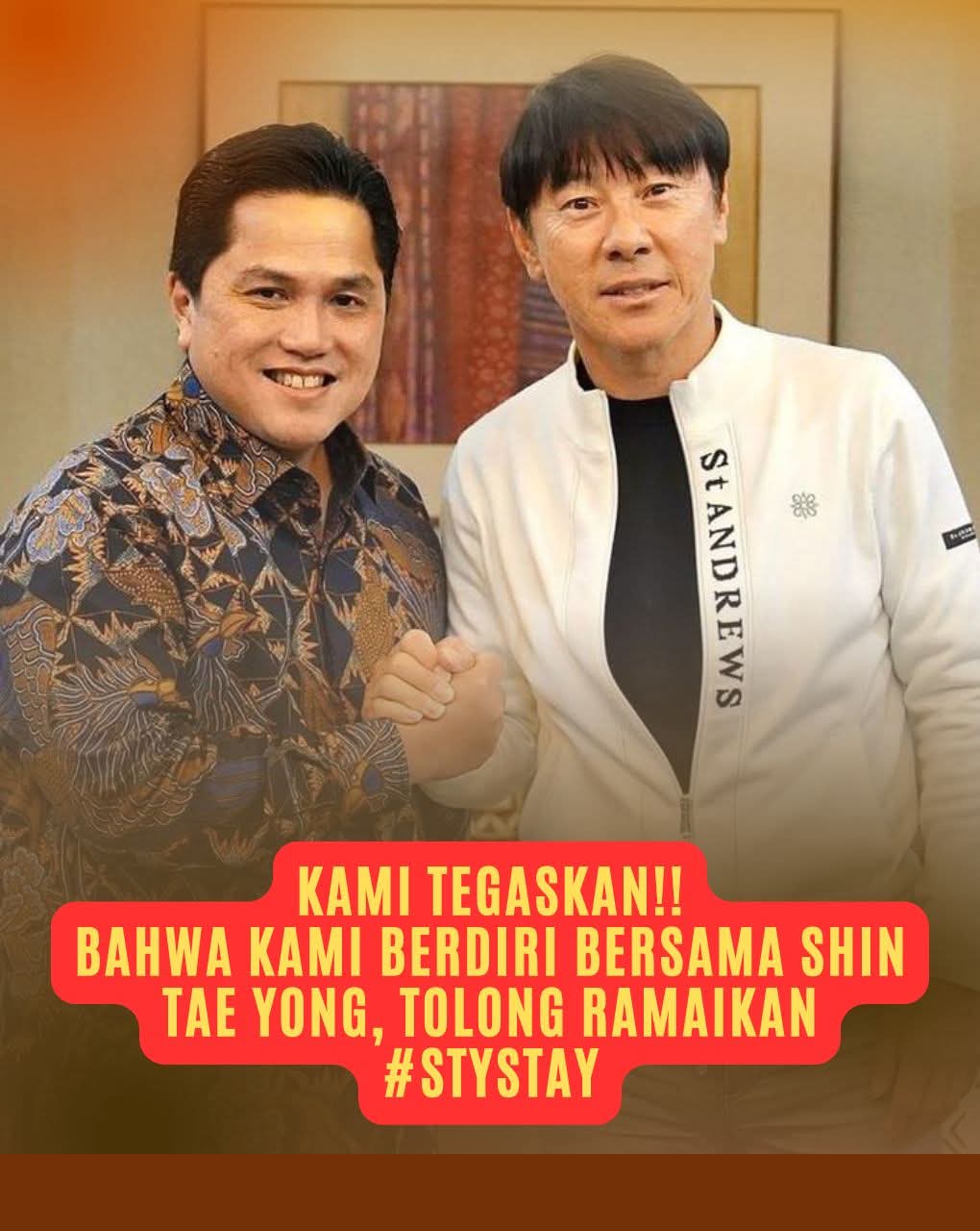Untuk persoalan Timnas Sepakbola Indonesia, percayakan sekarang kepada Erick Tohir, Patrick Kluiverts, danj 2 asistennya. Sekarang buka hati dan pikiran. Perluas wawasan globalnya. Udah nggak laku primordial itu dek. Maju ya dek cara berpikirnya. Kita doakan para pejuang lapangan hijau. Jangan keseringan dengeri Towel, ya.