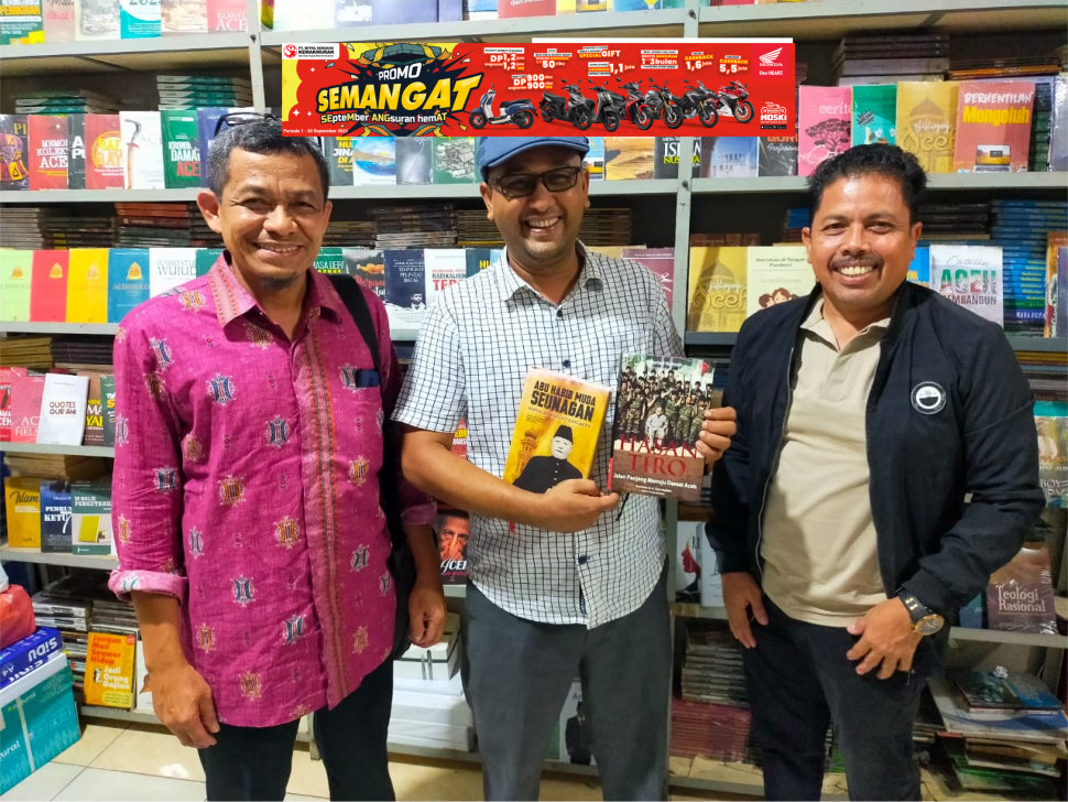 Saya terpesona dengan buku-buku yang dipajang. Apalagi ketika melihat biografi “Hasan Tiro: Jalan Panjang Menuju Damai Aceh” yang ditulis oleh Murizal Hamzah.