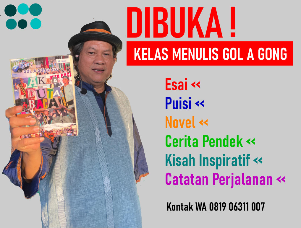 Ya, dibuka Kelas Menulis Gol A Gong. Ada kelas cerita pendek, puisi, novel, kisah inspiratif, dan catatan perjalanan. Bisa satu group – dibatasi 5 orang. Boleh juga sendiri, kok. Pokoknya Gol A Gong menyesuaikan. Bayar? Iya. Berapa? Murah dan terjangkau. Kapan sih Gol A Gong ngasih mahal? Ayo, kontak Tias Tatanka via WA 0819 06311 007.