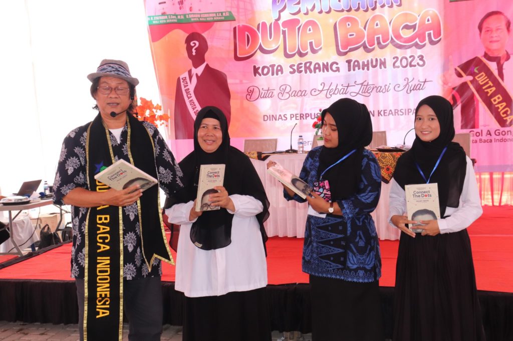 Dalam pembekalan calon Duta Baca Kota Serang, Duta Baca Indonesia bersimulasi menanyakan tagline dan program mereka jika menjadi Duta Baca. Para peserta yang aktif merespon dan berani memaparkan tagline serta program kerja dihadiahi doorprize buku Connect The Dot karya Helmy Yahya. (*)