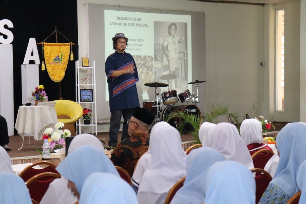 “Selanjutnya cerita dalam fiksi mini juga harus diceritakan dalam satu setting lokasi, satu setting waktu. Selesaikan cerita. Jangan digantung atau open ending,” jelas Duta Baca Indonesia.