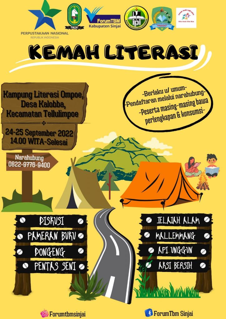 ” Tingkatkan Minat dan Daya Baca Masyarakat, Wujudkan Literasi Untuk Kesejahteraan “. Mari ramaikan Kemah Literasi Sinjai Bersama Duta Baca Indonesia Gol A Gong, 24-25 September 2022. Kemah Literasi ini diselenggarakan oleh PD Forum TBM Sinjai, DPC IPI Sinjai, Pemerinta Desa, Kalobba PKBM PADAIDI, Forum Anak Colli Loloe