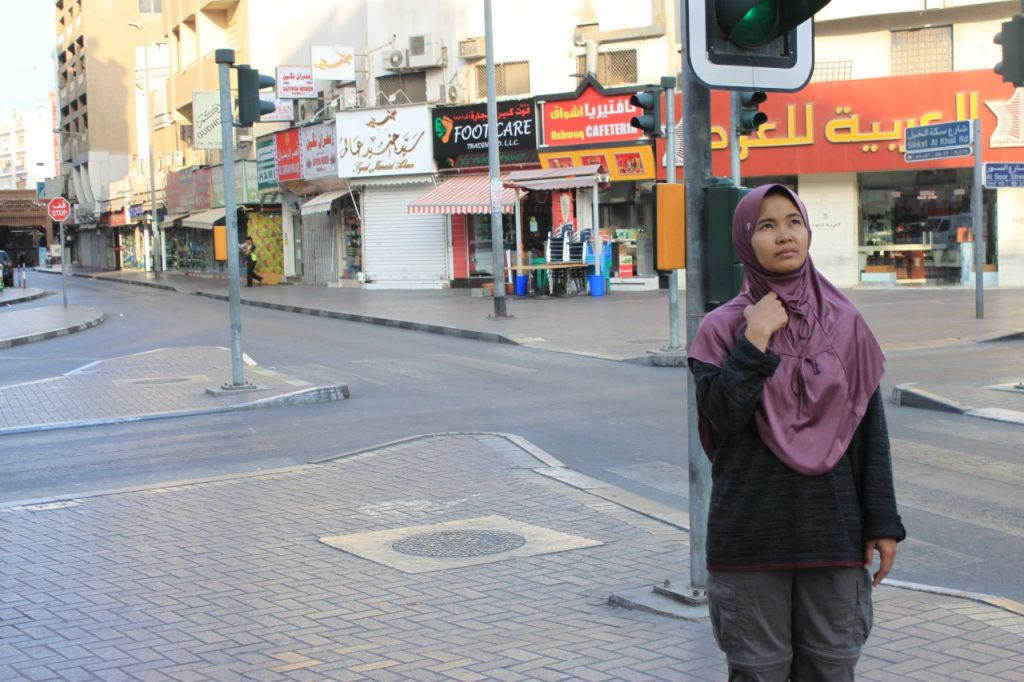 Ada cleaning service melintas. Aku panggil. Aku katakan kepada dia,”Bisa cariin tiket ke Dubai hari ini?”