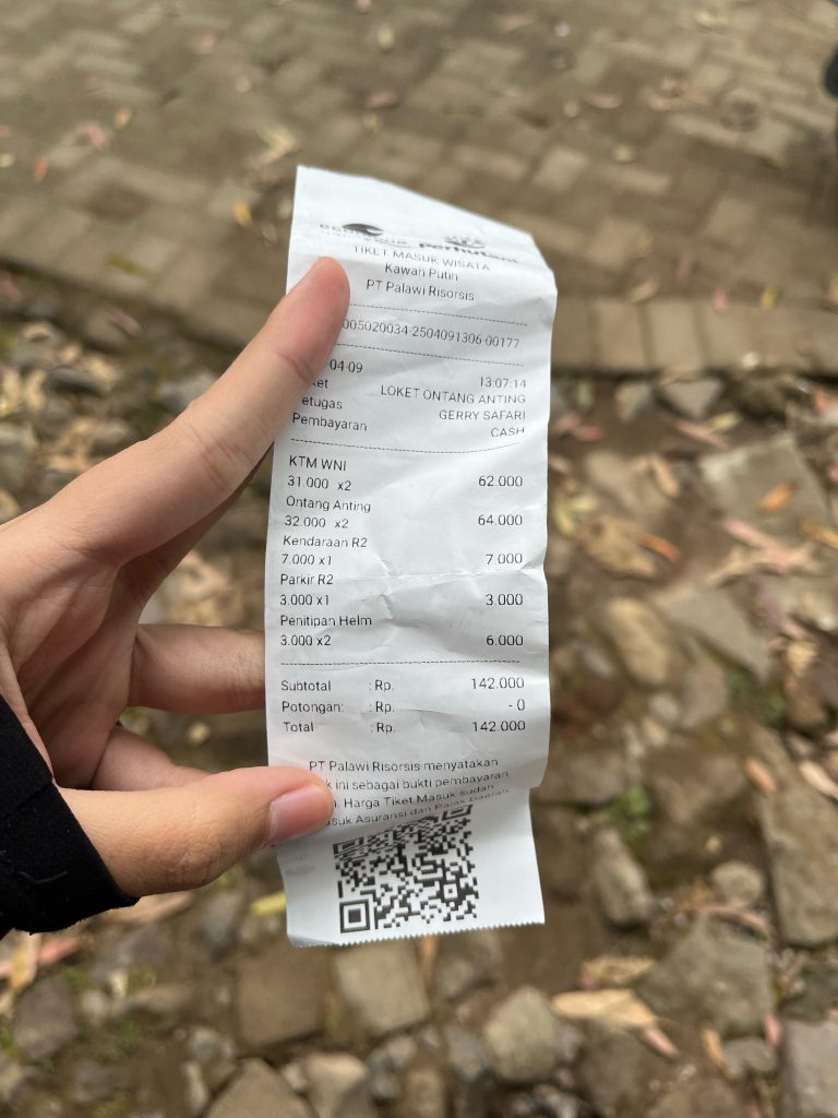 Untuk biaya masuknya, tenang, masih terjangkau kok. Tiket masuk untuk WNI itu Rp 31.000 per orang. Kalau kamu naik kendaraan sendiri, ada tambahan Rp7.000 untuk masuk kendaraan, dan parkir per motor dikenakan Rp 3.000. Kalau kamu bawa helm dan mau dititipin, biayanya Rp 3.000 per helm. Dan yang paling praktis, semua pembayaran ini dilakukan saat masuk ke lokasi, pembayaran sekali udah termasuk semua itu. Terus bisa pakai QRIS, jadi gak harus bawa uang tunai banyak.