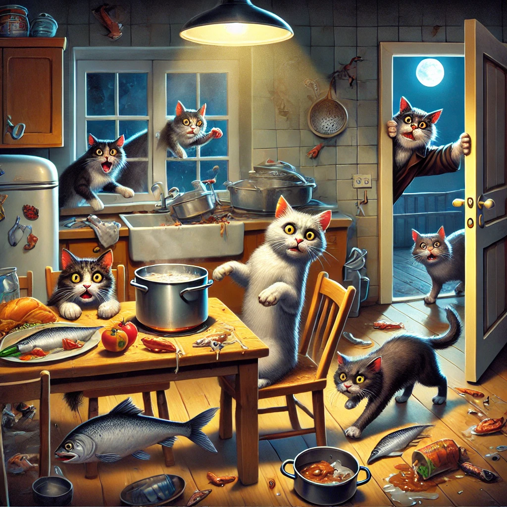 menyerbu dapur tetangga mencuri ikan