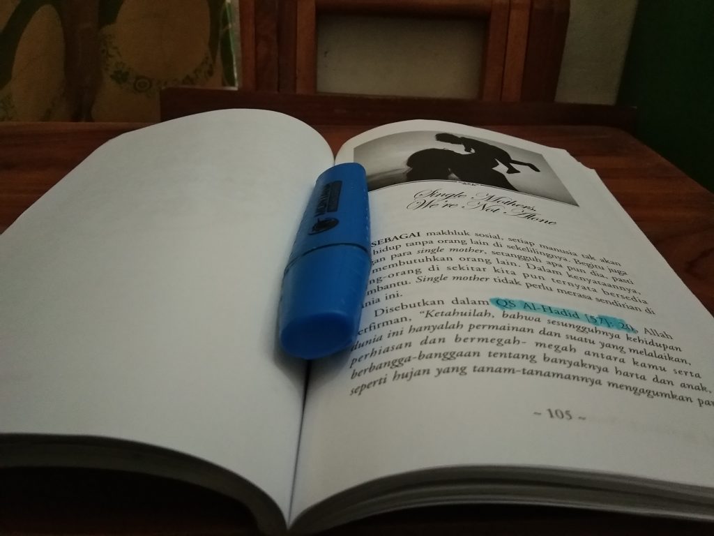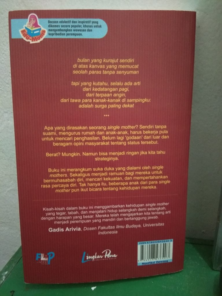 Aku sempat berpikiran seperti itu. Tapi, setelah membaca kisah-kisah didalamnya, membuatku tersadar. Tak salah jika orang-orang menyematkan “ras terkuat dibumi” pada ibu-ibu. Single mother lebih dari itu. Mereka bukan hanya kuat, tapi juga tangguh.